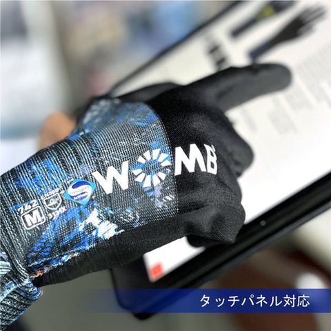 ・色:コラージュ/ブラック・サイズ:M・全長(cm):23.5・手のひら周り(cm):19.0・中指長さ(cm):7.4・厚さ(mm):約1.5・ゲージ数:15・リストカラー:ブルー