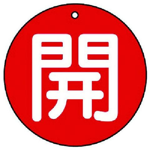 ・色:赤・表示内容:開・赤地(白文字)・縦(mm):30・横(mm):30・厚さ(mm):2・色(開):赤・外径(mm):30・摘要:4mmФ穴上1・5枚1組・両面表示・寸法(mm):30Ф×2厚