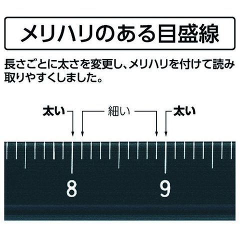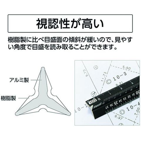 ・目盛線を長さごとに太さを変更し、読み取りやすくしました。・アルミ製で薄型形状なので、目盛が見やすくなっています。・レーザー刻印で、印刷に比べて目盛が消えにくく長持ちします。・地積測量図や建築平面図など、登記手続きに必要な図面作成、読み取りに便利です。