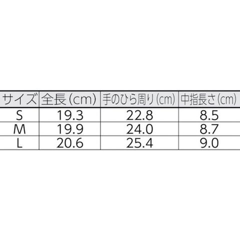 ・色:ブラック/蛍光黄緑/レッド・サイズ:S・全長(cm):19.3・手のひら周り(cm):22.8・中指長さ(cm):8.5・EN388 2003規格:4543・EN388 2016規格:4X43FP・すべり止め:あり:TP-X・耐切創レベル:X/F