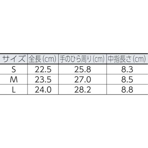 ・色:ブラック・サイズ:L・全長(cm):24.0・手のひら周り(cm):28.2・中指長さ(cm):8.8・EN388 2003規格:4523・EN388 2016規格:4X33F・耐切創レベル:ANSI/ISEA CUT A9 / CE X/F