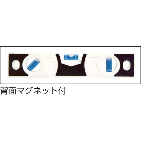 ・本体背面にマグネットを取り付けているため、エアコンの据え付け板やテレビの壁掛け金具の位置出し調整に本体を付けたまま作業可能です。・測定面にもマグネット付です。・水平気泡管下に蓄光シートが付いており暗い所でも気泡管が見やすくなっています。