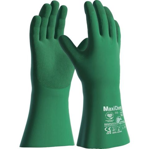 ・色:グリーン・サイズ:L・全長(cm):35.0・手のひら周り(cm):24.0・中指長さ(cm):8.3・厚さ(mm):1.1・EN ISO 374-1:2016規格:Type A J.K.L.M.N.O・すべり止め:あり・EN388 2016規格:4321B