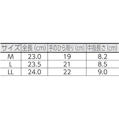 ・色:ブラック・サイズ:M・全長(cm):23.0・手のひら周り(cm):19.0・中指長さ(cm):8.2・厚さ(mm):0.65・袖口タイプ:パイルゴムマジック・すべり止め:なし
