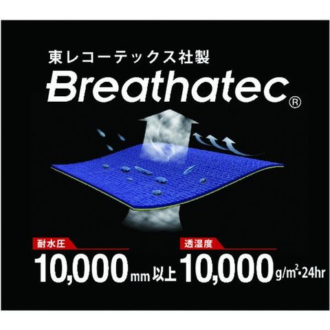 ・東レコーテックス社の国産防水透湿素材“ブリザテック[[R上]]”を使用した高機能レインスーツです。・「デュールファンク加工」で耐久はっ水性に優れています。・3Dカッティングにより腕の動きが楽になりました。・袖口調節タブで雨の浸入を防ぎます。