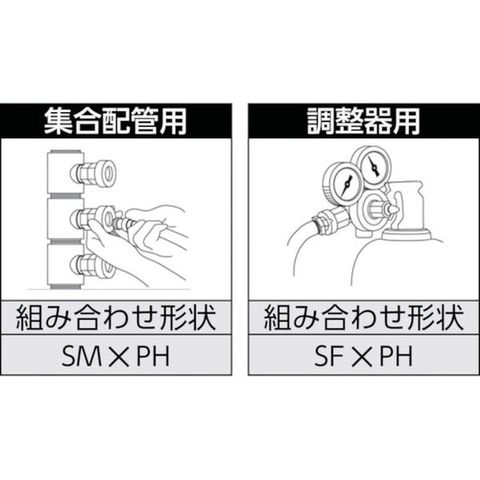 ・誤接続防止のため、酸素用と燃料ガス用のはめ合いサイズとスリーブ色を変え安全性を追求します。・本体はクロムメッキ仕様で耐食性に優れ、プラグには焼き入れを施し耐久性も向上します。