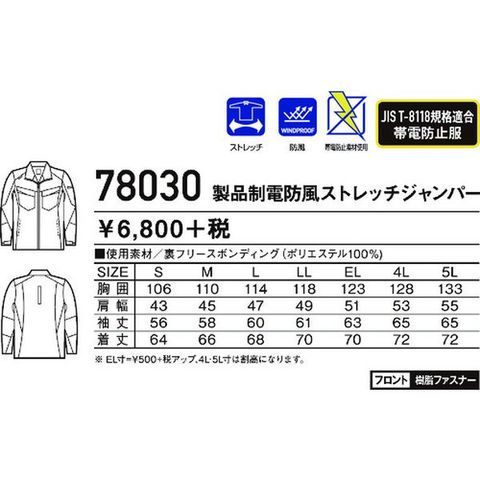 ・フルハーネス対応で防風機能も兼ね備えた制電防寒ジャンパーです。