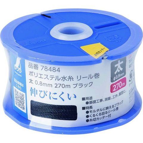 シンワ測定(株) シンワ ポリエステル水糸 リール巻 太 0.8mm 270m ブラック