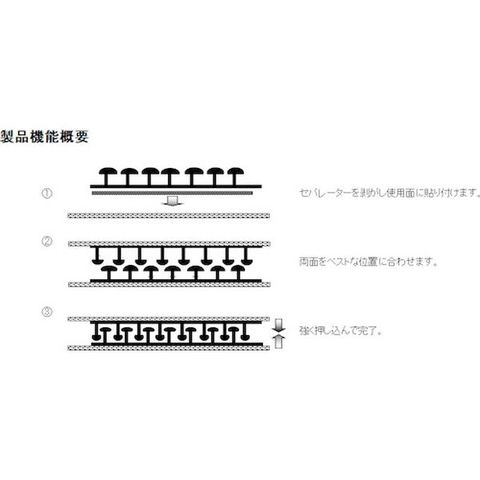 ・触れ合っただけでは係合しないので位置決めが容易にできます。・金属やプラスチックにも有効な粘着付です。・オスメスタイプよりも強固に係合します。・織物構造なのでフレキシブルにご使用いただけます。