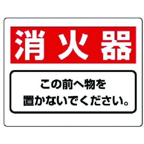 ・表示内容:消火器この前へ物を置かないでください。・縦(mm):225・横(mm):300・厚さ(mm):1.2・摘要:2.5mmФ穴4スミ