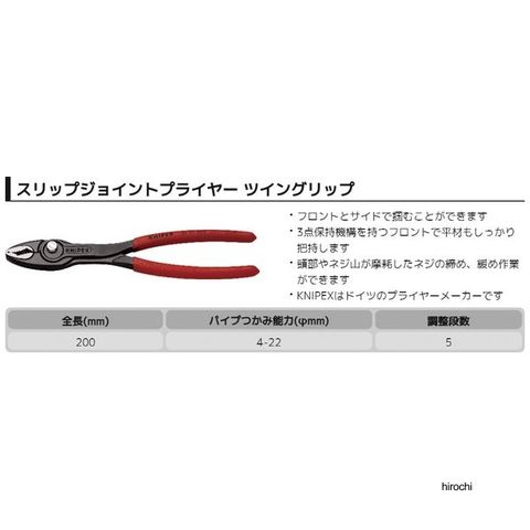 クニペックス KNIPEX TwinGrip ツイングリップ スリップジョイントプライヤー 200mm 滑り止めプラスティックコーティングハンドル