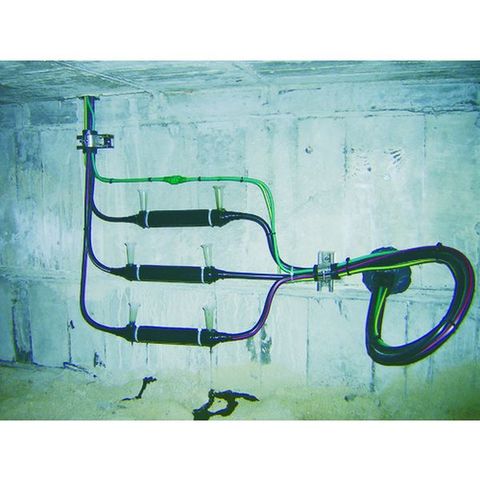 ・電力用低圧ケーブルの接続部を完全防水します。・接続部が「架空・地中・直埋」のいずれにも対応しています。・二液性の常温硬化型のレジン(樹脂)が接続部を完全に覆い、絶縁・防水・保護を行います。