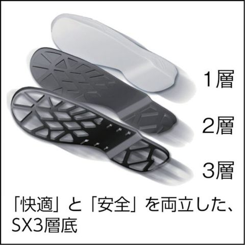 ・接地面積を最大化する「独立懸架方式」のSX3層底により、あらゆる凹凸床面や平滑床面においても優れたグリップ力を発揮します。・軽量化、耐久性など多くの点で高機能を実現しました。・自衛隊や警察本部、消防本部でも採用されています。