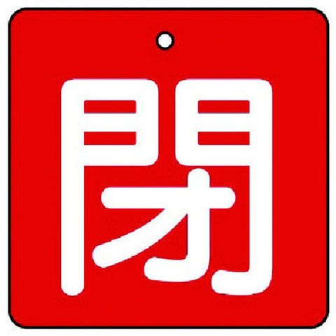 ・色:赤・表示内容:閉・赤地(白文字)・縦(mm):50・横(mm):50・厚さ(mm):2・色(閉):赤・摘要:4mmФ穴上1・5枚1組・両面表示・寸法(mm):50×50×2厚