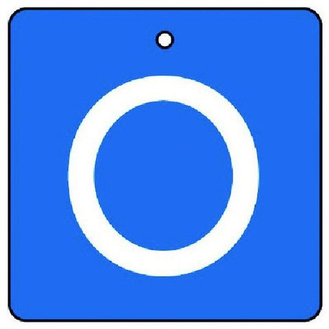・表示内容:O・青地(白文字)・縦(mm):65・横(mm):65・厚さ(mm):2・摘要:4mmФ穴上1