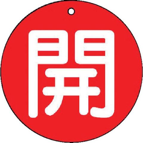 ・色:赤・表示内容:開・赤地(白文字)・縦(mm):50・横(mm):50・厚さ(mm):2・色(開):赤・外径(mm):50・取付仕様:穴1ヵ所
