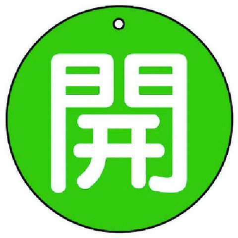 ・色:緑・表示内容:開・緑地(白文字)・縦(mm):50・横(mm):50・厚さ(mm):2・色(開):緑・外径(mm):50・摘要:4mmФ穴上1・5枚1組・両面表示・寸法(mm):50Ф×2厚