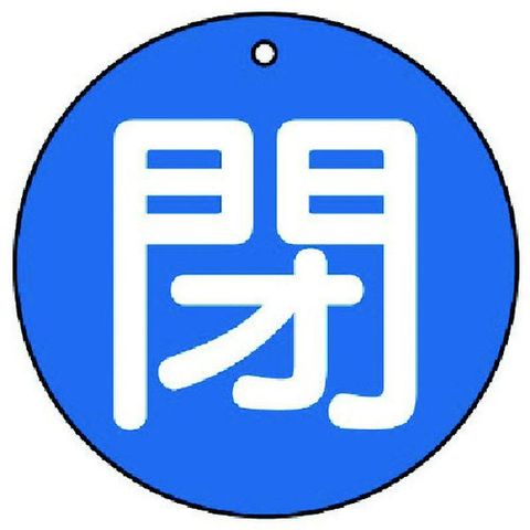 ・色:青・表示内容:閉・青地(白文字)・縦(mm):50・横(mm):50・厚さ(mm):2・色(閉):青・外径(mm):50・摘要:4mmФ穴上1・5枚1組・両面表示・寸法(mm):50Ф×2厚