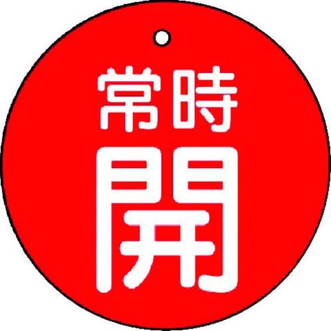 ・色:赤・表示内容:常時開・赤地(白文字)・縦(mm):50・横(mm):50・厚さ(mm):2・取付仕様:穴1ヵ所