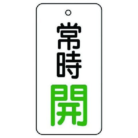 ・色:白・表示内容:常時開・白地(開緑文字)・縦(mm):80・横(mm):40・厚さ(mm):2・摘要:4mmФ穴上1・5枚1組・両面表示・寸法(mm):80×40×2厚