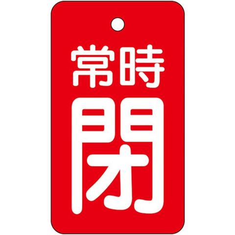 ・色:赤・表示内容:常時閉・縦(mm):70・横(mm):40・厚さ(mm):2・色(閉):白・穴径(mm):4・穴仕様:上部1箇所