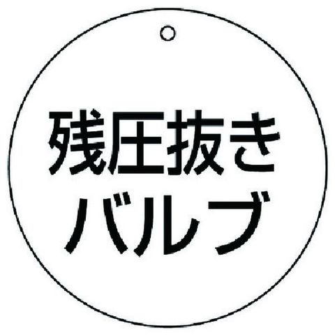 ・色:白・表示内容:残圧抜きバルブ・縦(mm):70・横(mm):70・厚さ(mm):2・外径(mm):70・摘要:4mmФ穴上1・5枚1組・両面表示・寸法(mm):70Ф×2厚