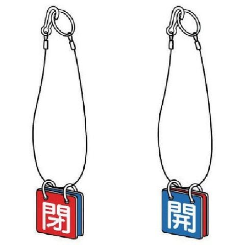 ・表示内容:開/閉 青地白文字/赤地白文字・縦(mm):40・横(mm):40・厚さ(mm):2・表示板寸法(mm):40角×2厚・吊り下げロープ寸法(mm):0.7Ф×400