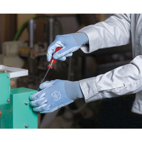 ・特別な編み方で破れやすい親指、人差し指、中指の指先摩耗を2倍以上強くしています。(メーカー比)・通気性がよく、ソフトで長時間作業も快適です。・ホコリの発生が少ない繊維のため、クリーンな作業に適しています。・手によくフィットし、細かな作業に適しています。