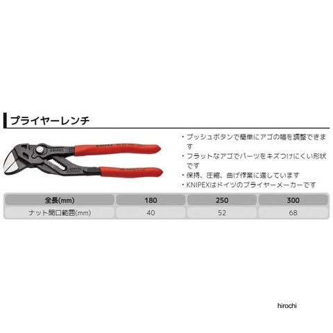 クニペックス KNIPEX プライヤーレンチ 250mm プラスティックコーティングハンドル 亜鉛合金メッキ