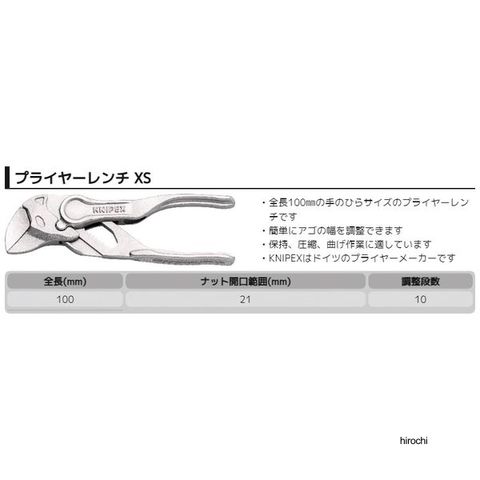 クニペックス KNIPEX プライヤーレンチ XS 100mm エンボス加工ハンドル