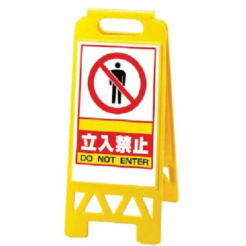 ・表示内容:○○立入禁止 DO NOT ENTER(○○文字入れサイズ33×230mm)・間口(mm):300・奥行(mm):37・高さ(mm):680・色:イエロー・摘要:折りたたみ式・本体色:イエロー・寸法(mm):680×300×37・表示ステッカー/417×257