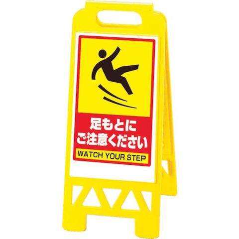 ・表示内容:足もとにご注意ください WATCH YOUR STEP・間口(mm):300・奥行(mm):407・高さ(mm):654・色:イエロー・本体色:イエロー