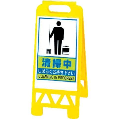 ・表示内容:清掃中 しばらくお待ち下さい CLEANING IN PROGRESS・間口(mm):300・奥行(mm):407・高さ(mm):654・色:イエロー・本体色:イエロー
