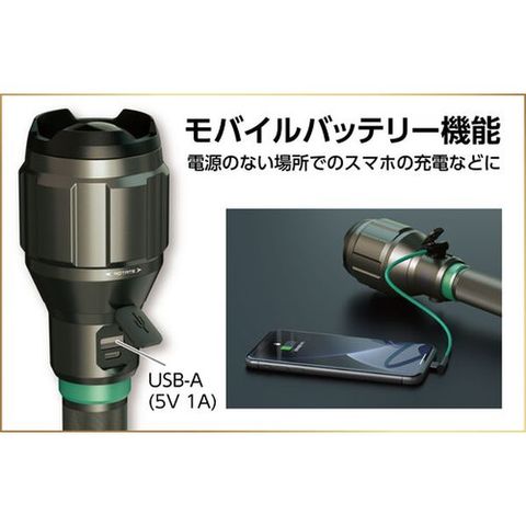 ・モバイルバッテリー機能付きなので、現場だけでなくレジャーや防災時でも便利です。・最大明るさ12000ルーメン(ブーストモード時)です。