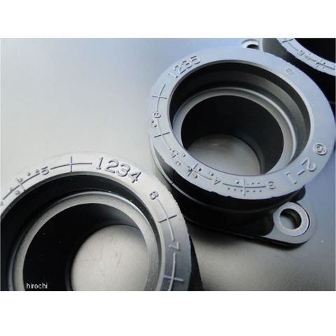キャブとエンジンを連結するための黒いゴム部分になります。この部分が劣化しますと外観にヒビが入り、ヒビ部分やオーリング部分からエンジン内部に空気が入るようになります。そうしますとエンジンの回転落ちが悪くなったり、エンジンのかかりが非常に悪い症状が出ます。そのため外観にヒビなどが入っている場合は早めの交換をお奨め致します。