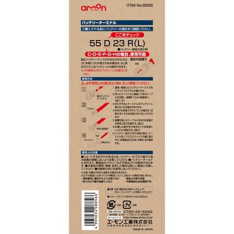8856 エーモン バッテリーターミナル バッテリーサイズ C・D・E・F・G・H M8丸端子用