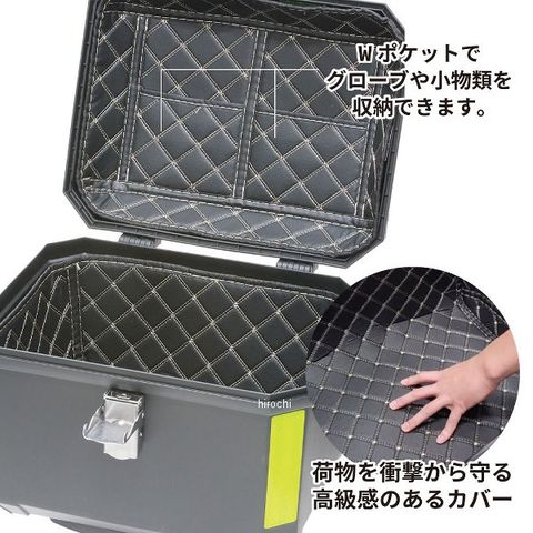 軽量!持ち運びも楽々なスクエアタイプ リアボックス バックレスト付き。ツーリングや通勤・通学に最適!機能性と防犯性を兼ね備えた、スクエアタイプのリアボックスです。