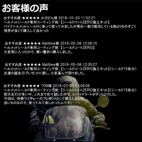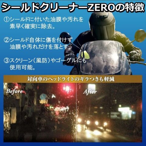 バイクのヘルメットシールド専用油膜除去剤です。ポリカ素材でも傷を付けずに油膜を除去できます。