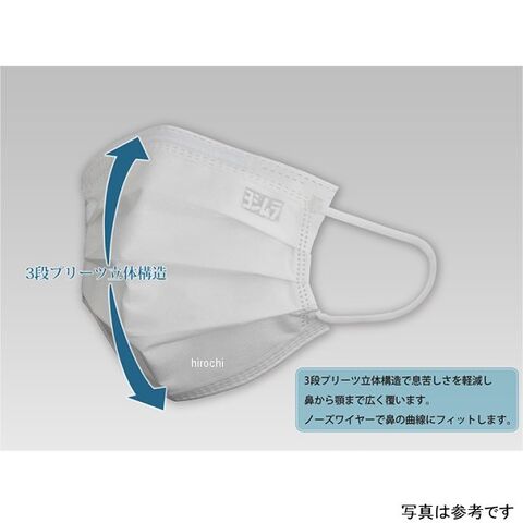 3段プリーツ立体構造で息苦しさを軽減し鼻から顎まで広く覆います。