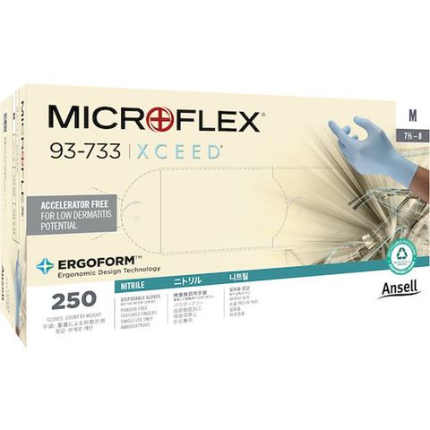 937339 耐薬品ニトリルゴム使い捨て手袋 マイクロフレックス 93-733 Lサイズ (250枚入)