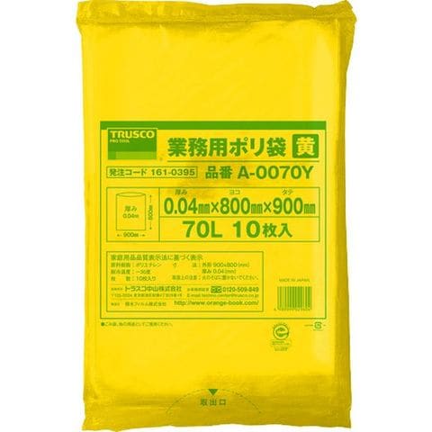 A0070Y トラスコ中山(株) TRUSCO 業務用ポリ袋 厚み0.04 X70L 黄 10枚入