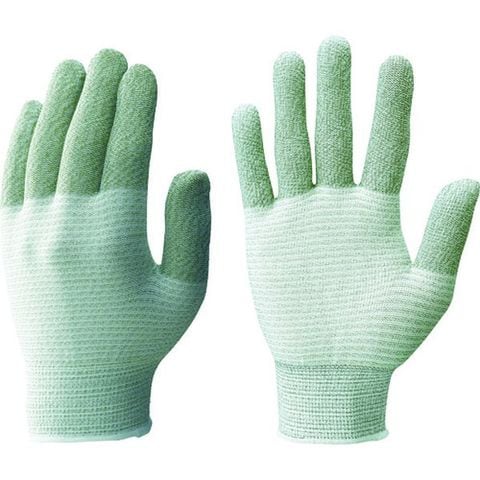・色:グレー・サイズ:M・全長(cm):18.0・手のひら周り(cm):17.0・中指長さ(cm):6.6・厚さ(mm):約0.6・ゲージ数:13・リストカラー:ホワイト・表面抵抗値(Ω):10[[の5-7乗]]Ω