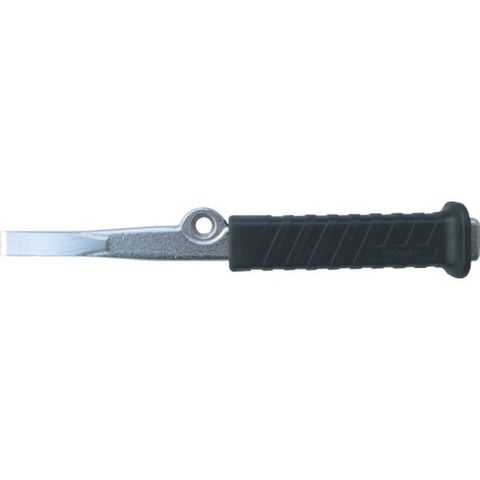 ・割る、はがす、削る、ハツルと多用途に使用できるタガネです。・高所作業に安全な落下防止の取り付け穴付です。・手への衝撃を緩和し、持ちやすいグリップ付きで、ハンマーを打ち損じた時でも、持ち手に当たりにくい形状です。