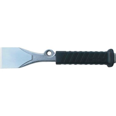 ・割る、はがす、削る、ハツルと多用途に使用できるタガネです。・高所作業に安全な落下防止の取り付け穴付です。・手への衝撃を緩和し、持ちやすいグリップ付きで、ハンマーを打ち損じた時でも、持ち手に当たりにくい形状です。