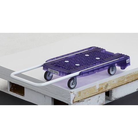 ・天板をポリカーボネート製にすることで、今までにない透明感のある台車を実現しました。・天板をメッシュ構造にすることで、床面からの反響音を抑え走行が静かです。・ハンドルを収納すると、平台車として使用可能です。・ハンドルを後ろ斜めに倒して、引張りながら荷物を運ぶことができます。