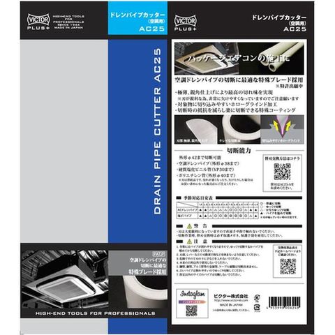・切断能力(mm):38・切断可能パイプサイズ:φ38・全長(mm):225・適合替刃:AC25-B・標準替刃:AC25-B・切断能力(mm)空調ドレンパイプ:~φ38