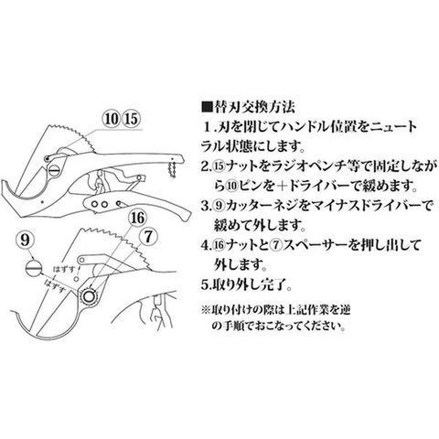 ・非常に鋭利な刃物ですので、交換の際には十分に注意して手順に従って作業してください。
