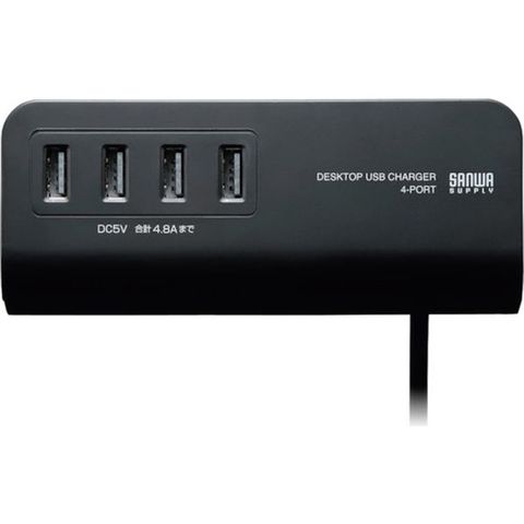 ・定格入力:AC100V(50/60Hz)・定格出力:DC5V/4.8A(4ポート合計最大)・ポート数:USB Aポート×4ポート・コード長:約2m・クランプ対応厚:天板の厚さが10~40mmまで