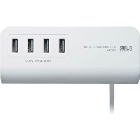 ・色:白・ポート数:4・幅(mm):135・奥行(mm):55.5・高さ(mm):43.5・ケーブル長(m):2・定格入力:AC100V(50/60Hz)・定格出力:DC5V/4.8A(4ポート合計最大)