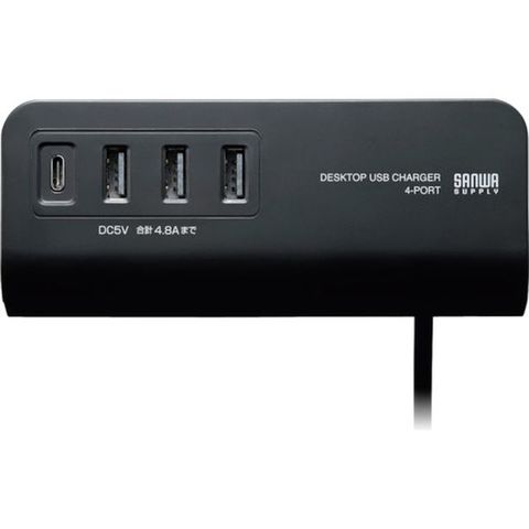 ・色:黒・ポート数:4・幅(mm):135・奥行(mm):55.5・高さ(mm):43.5・ケーブル長(m):2・定格入力:AC100V(50/60Hz)・定格出力:DC5V/4.8A(4ポート合計最大)